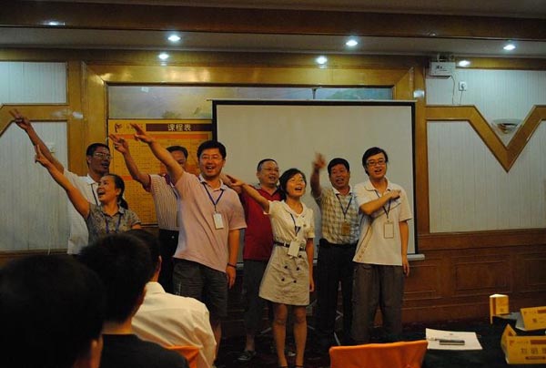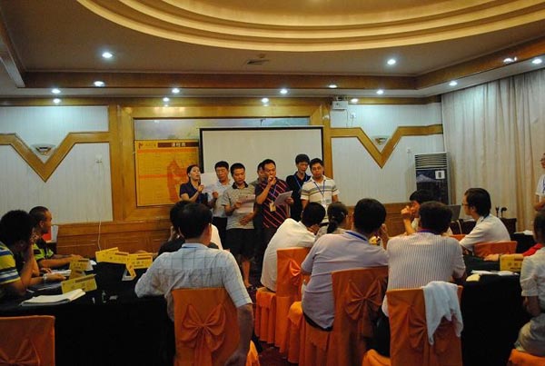 活動(dòng)為期兩天,由“廈裝”公司中高層管理人員及大界公司講師、輔導(dǎo)員共27人參加,培訓(xùn)活動(dòng)在大界公司講師的主持下氣氛異常的熱烈,“廈裝”公司及各控股子公司各級(jí)管理人員帶著“團(tuán)結(jié)互助,開拓進(jìn)取”的思想而來,對(duì)課程要求很快就熟悉起來,并按照培訓(xùn)的要求進(jìn)行分組、選隊(duì)長(zhǎng)、創(chuàng)造隊(duì)歌及隊(duì)手勢(shì)等有趣的活動(dòng)。