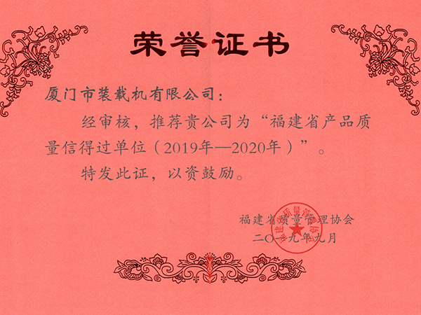 福建省產(chǎn)品質(zhì)量證書